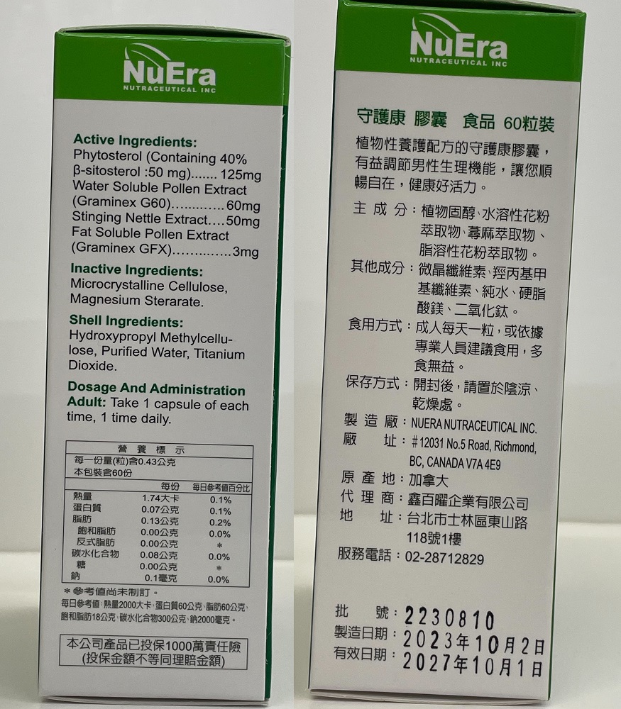 ★主成分:植物固醇(含40% β 穀固醇)、水溶性花粉萃取物(G60)、