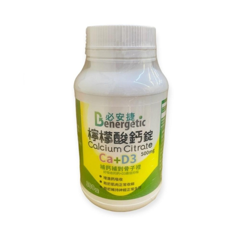 必安捷 檸檬酸鈣 500mg+維他命D3 500粒/瓶