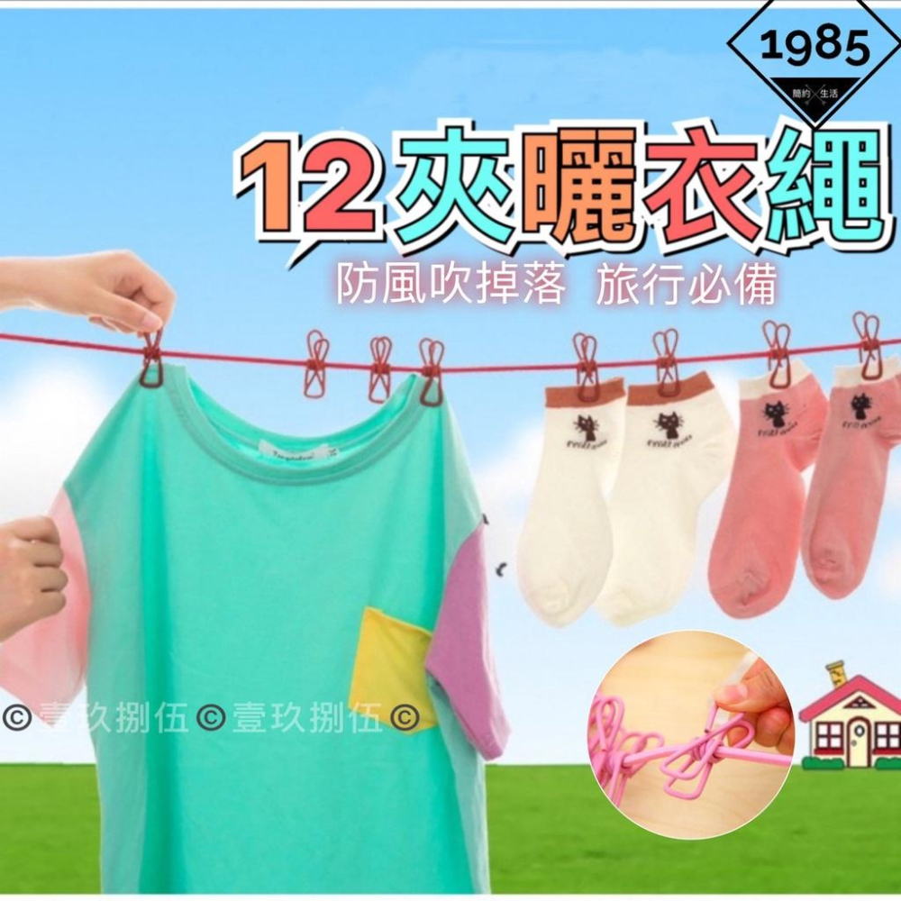曬衣繩 彈力曬衣繩 旅行 帶夾 露營《1985life 生活》方便攜帶 附夾曬衣繩 出國 曬衣 曬衣夾 衣架 衣夾 繩子