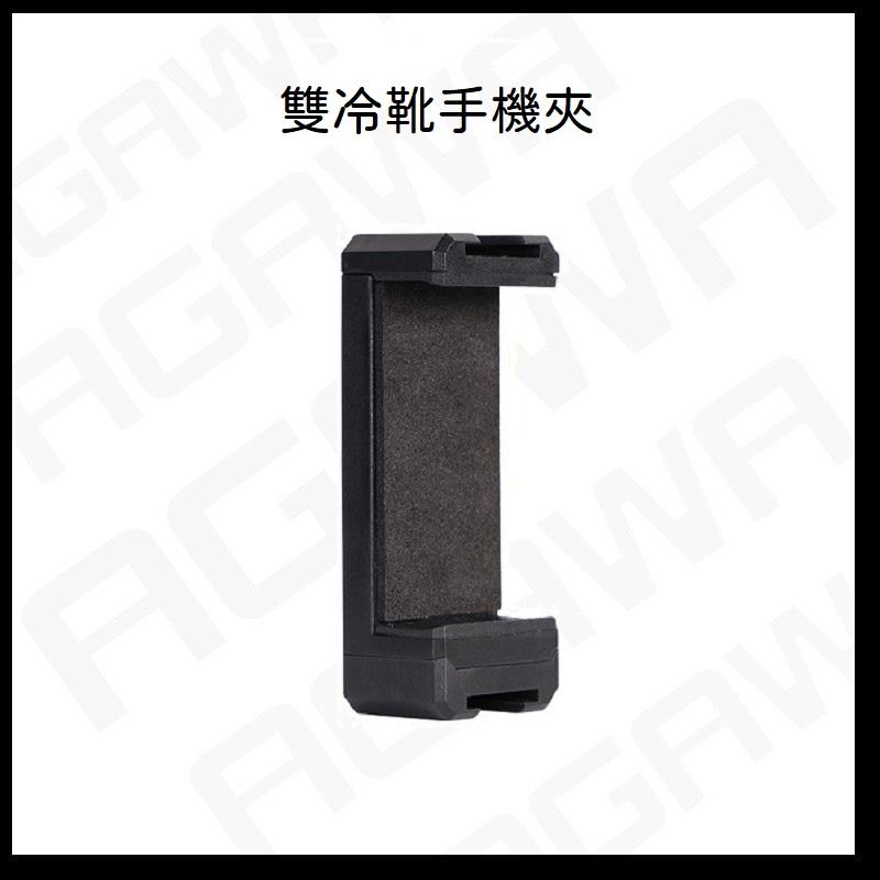 台南現貨 商品名稱:雙冷靴手機夾 商品重量:33g 商品材質:ABS+海綿 可夾範圍:62-100mm 商品適用:1/4"通用螺孔適合各種有1/4"螺牙之三角架 **商品內容物不包含圖中配件及相機樣品