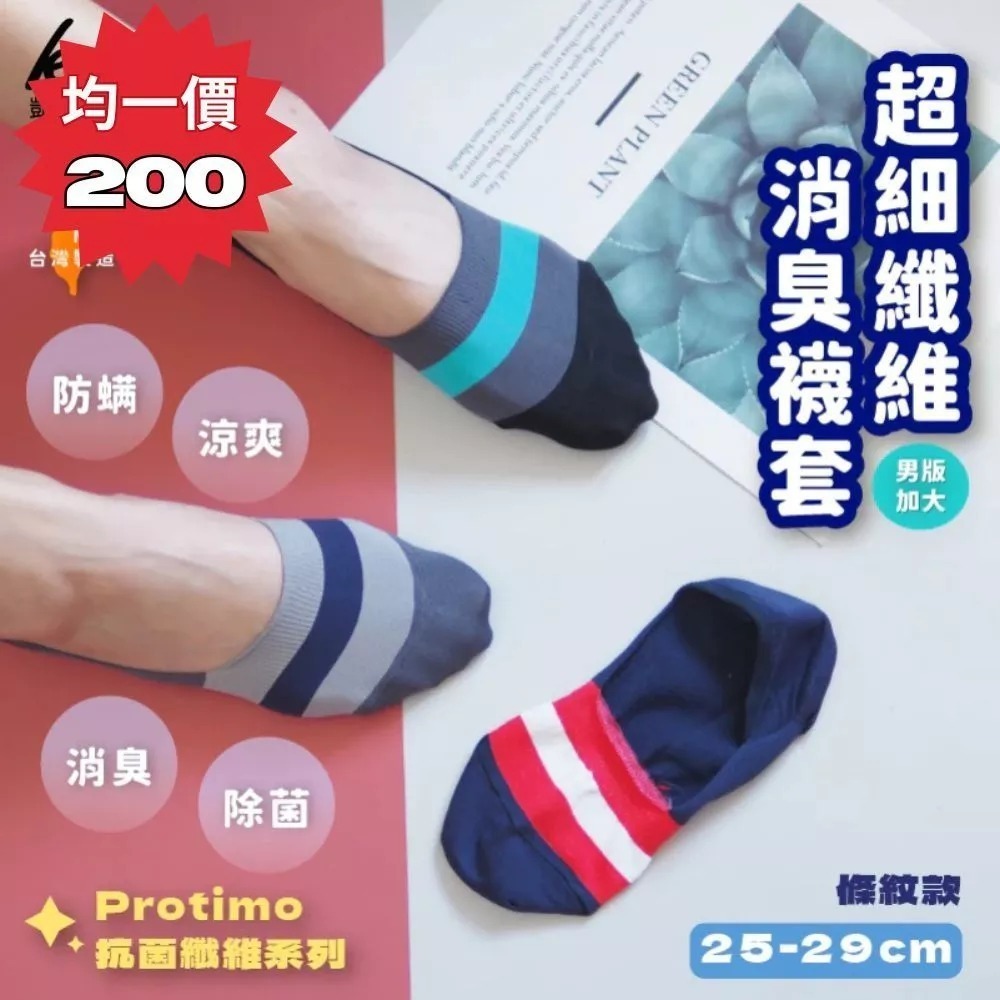 👍凱美棉業|十二雙組 MIT台灣製 Protimo 抗菌纖維 超細纖維消臭男襪套-條紋款隨機出色