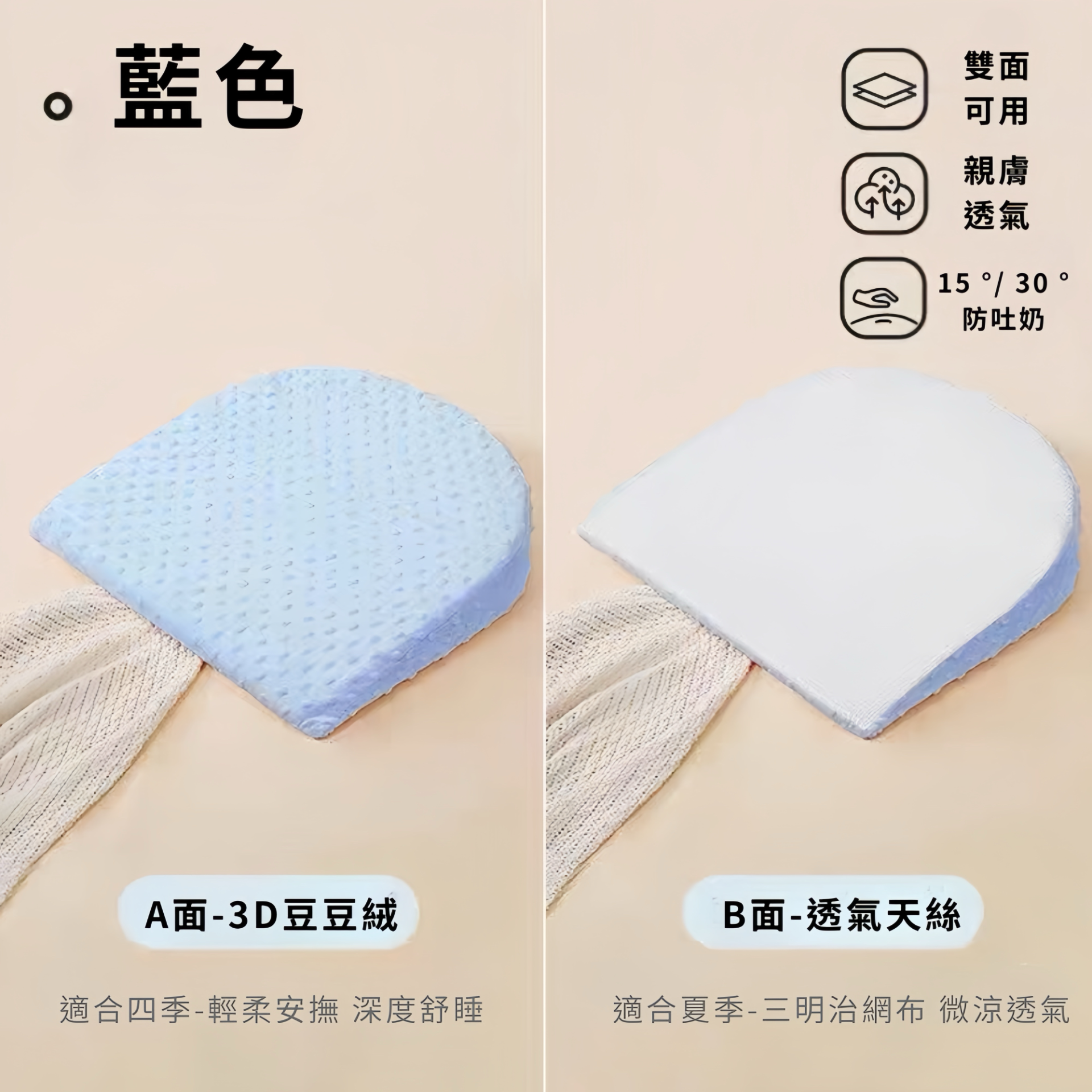🌟雙面可用:A面3D豆豆絨,輕柔安撫助眠;B面透氣天絲,夏季清爽透氣