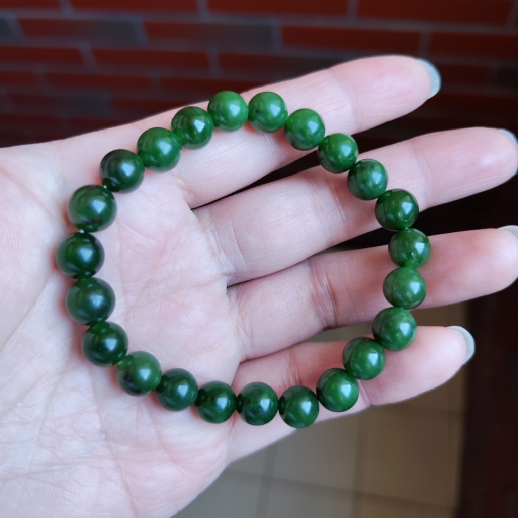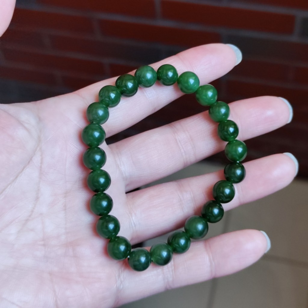 【珠串】和田玉 俄碧 碧玉 8mm+圓珠 手串