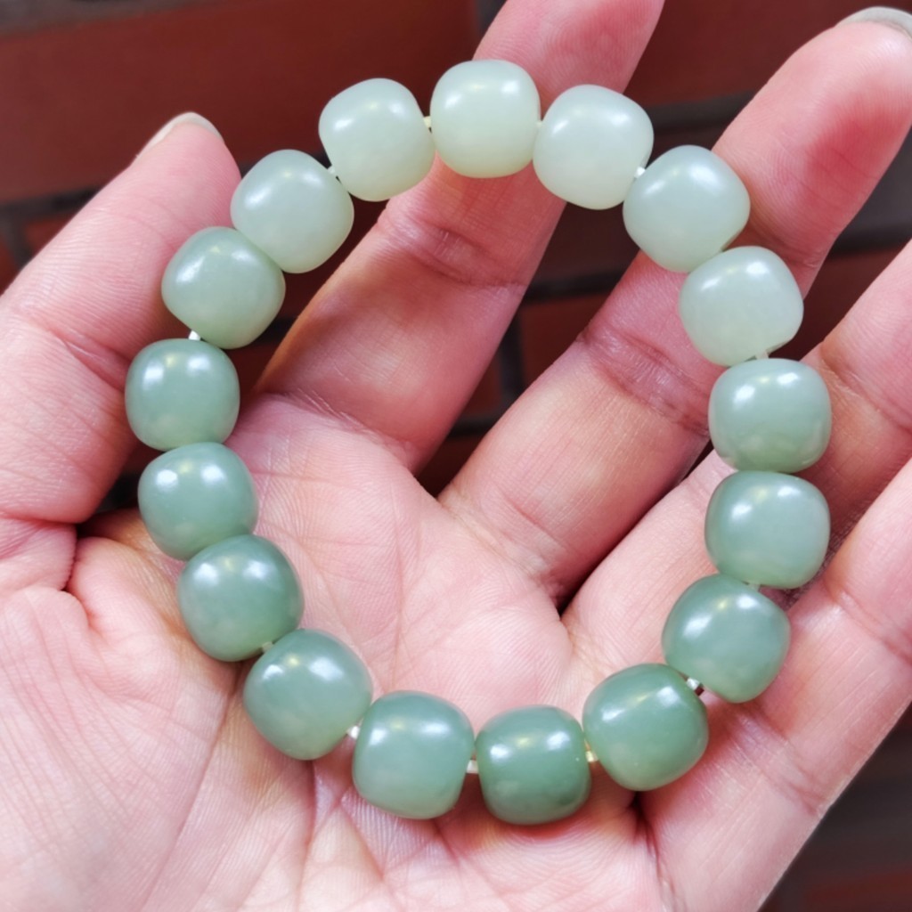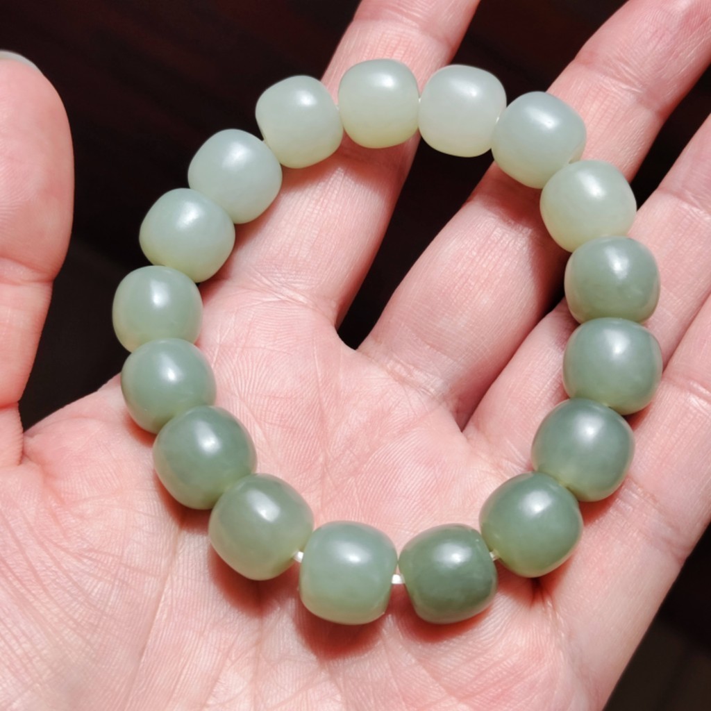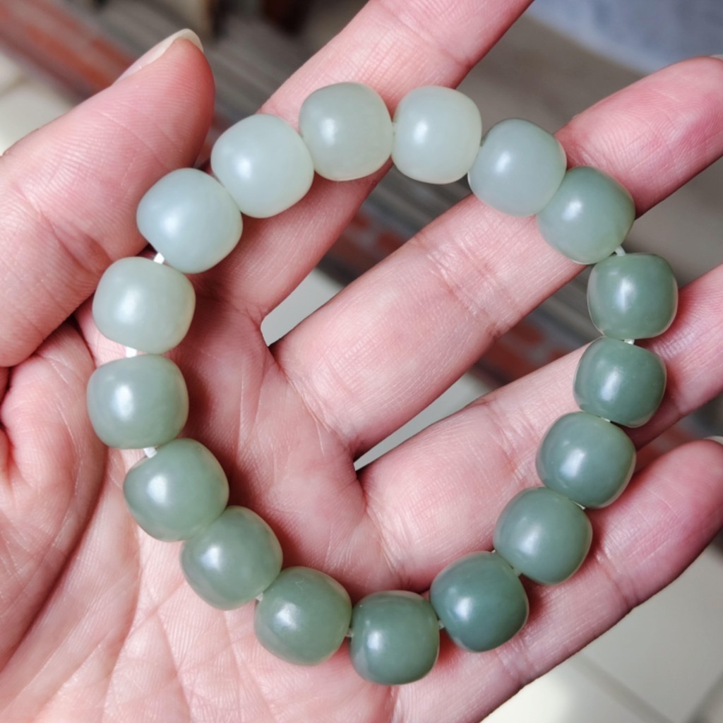 【珠串】和田玉 且末藍 微漸變手串 老形珠 啞光 12mx11m 手串