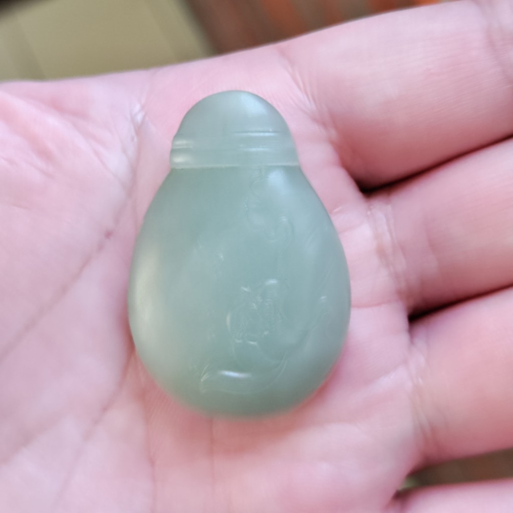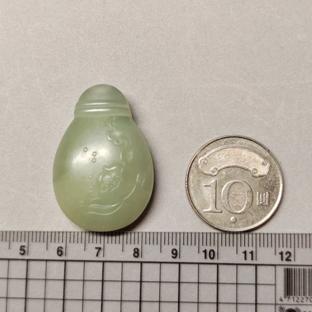和田玉青海料湖水綠小吊飾,頂部牛鼻孔