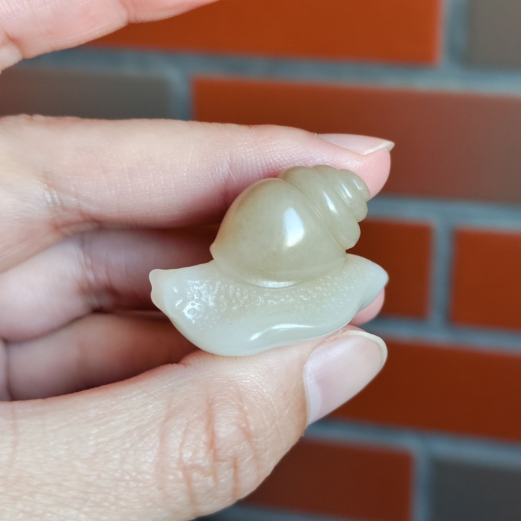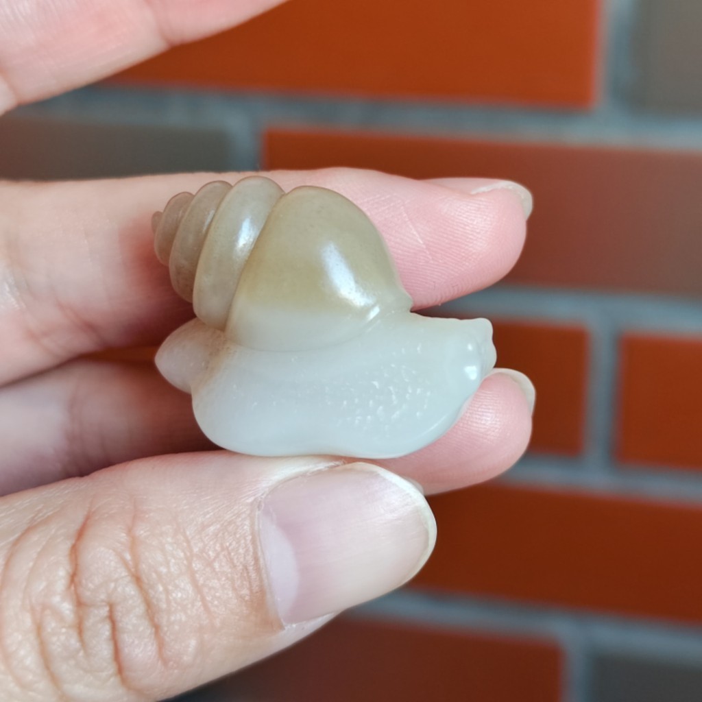 【掛墜擺件】和田玉 糖白色 小蝸牛 安居樂業 雕件 小擺件 無孔 手工雕