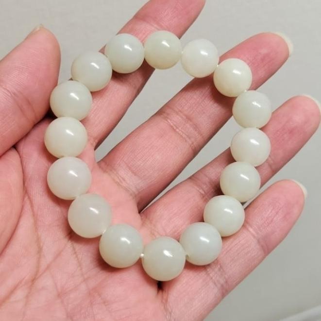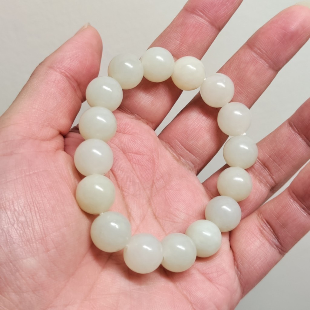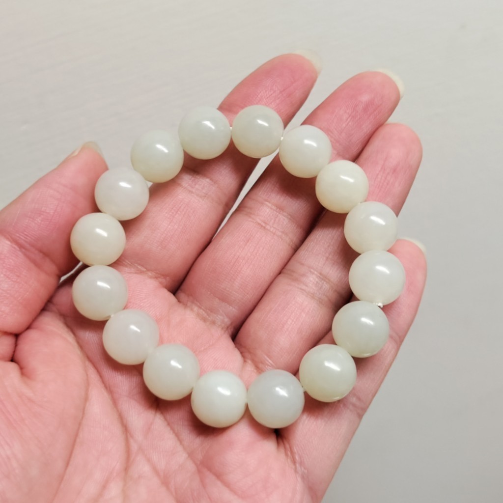 【珠串】和田玉 俄料 白色 暖白 手串 12+圓珠