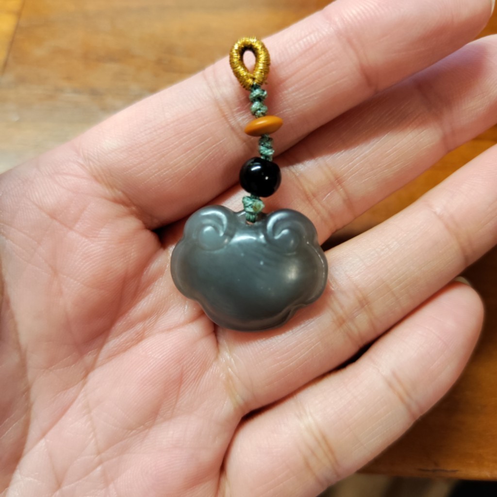 和田玉煙灰色平安鎖