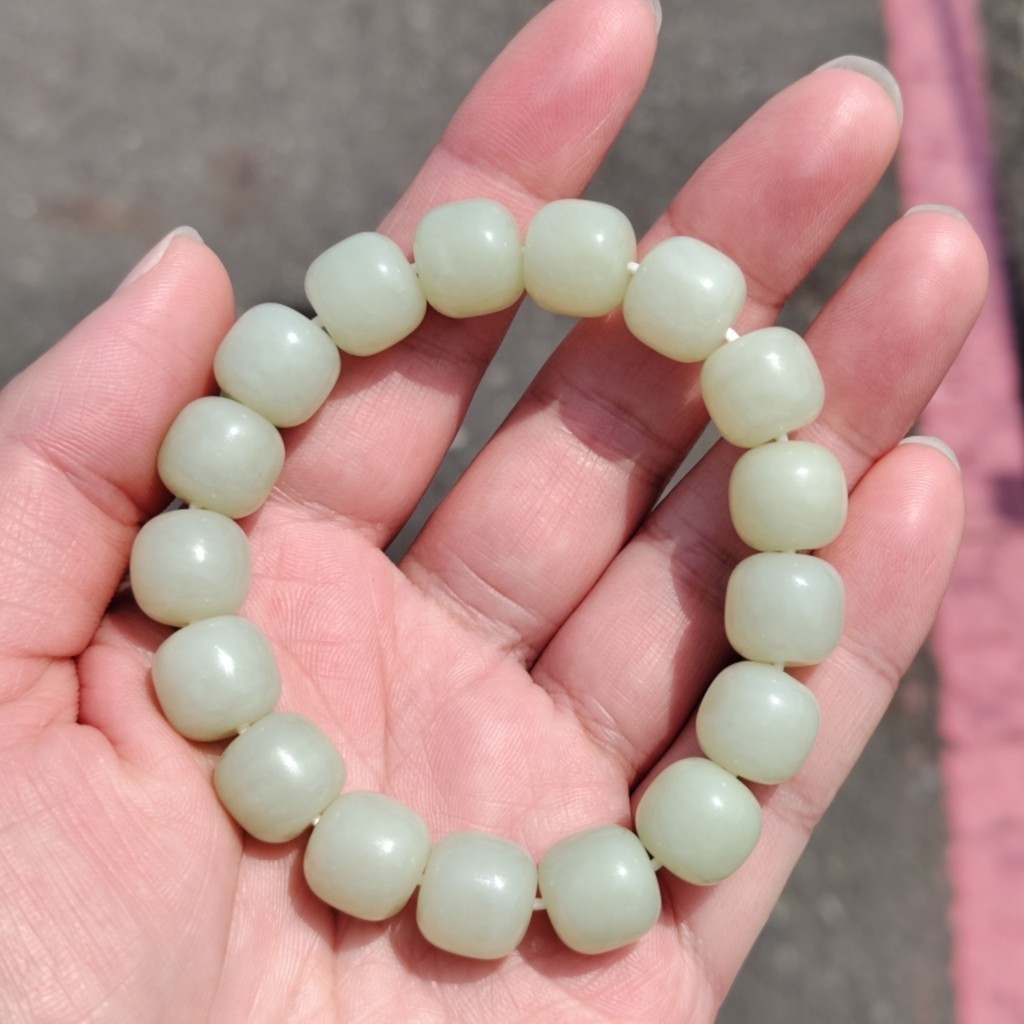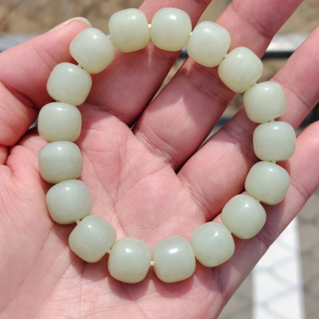 【珠串】和田玉 黃口 老型珠 手串 14mm x 12mm