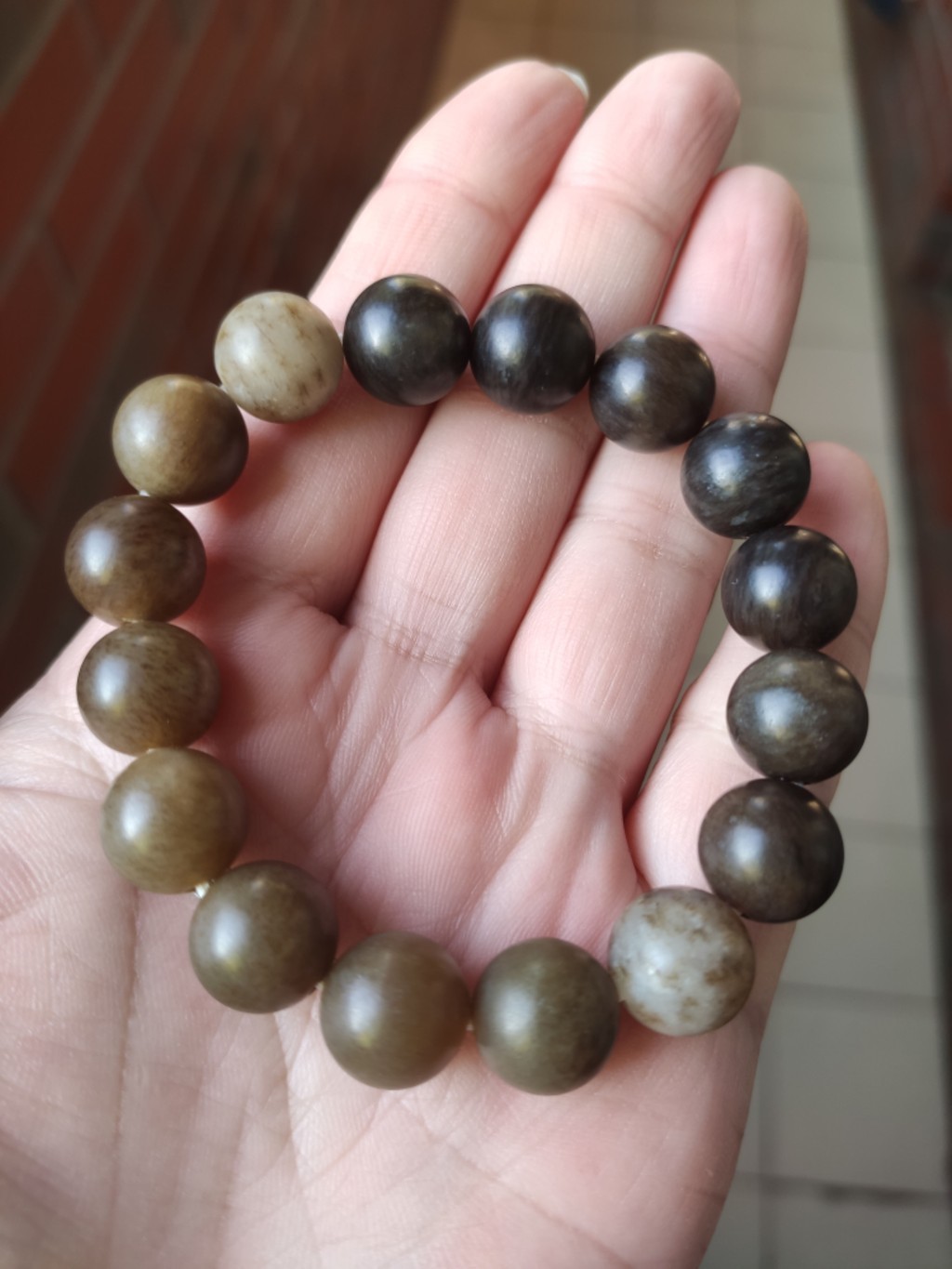【珠串】和田玉 糖色 雕件 圓珠 手串 和田玉手串 12mm