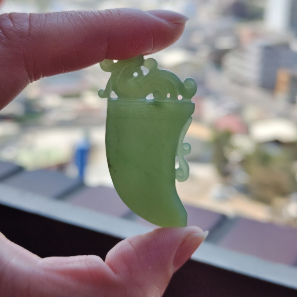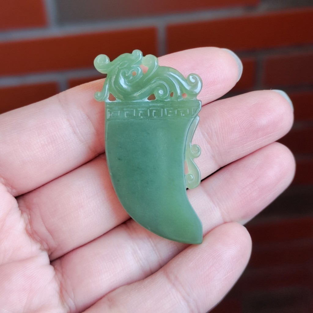 【掛墜擺件】和田玉 俄碧 碧玉 粉青 斧上有龍府上有龍 雙面雕
