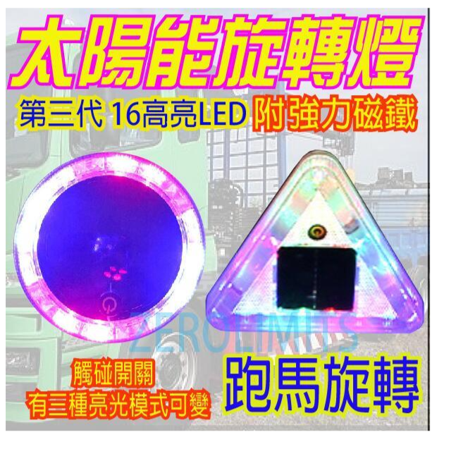 2022最新版 跑馬旋轉燈 附強力磁鐵 第三代高亮版 16燈LED太陽能爆閃燈 觸碰開關 警示燈 邊燈 後尾燈 側燈
