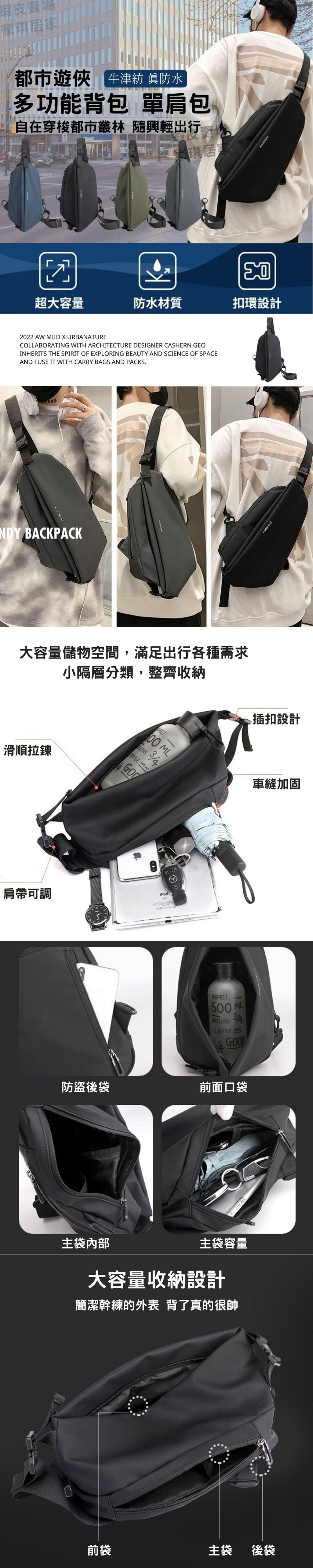商品名稱:百搭帥氣大容量防潑水肩背包