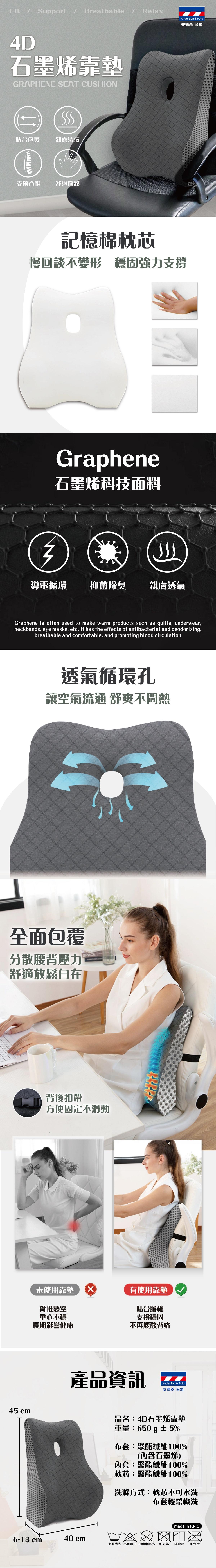 家琪居家 4D石墨烯靠墊 腰靠墊 腰靠 腰枕 石墨烯網面 靠墊 靠枕 背墊 座椅靠墊 汽車靠墊 護腰靠墊 記憶材質