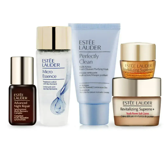 容量/規格: 1.雅詩蘭黛 Perfectly Clean 細緻煥采雙效淨化潔面乳(30ml)-新版 2.雅詩蘭黛 微分子肌底原生露(30ML) 新版 3.特潤超導全方位修護露(7ml) 4.年輕無敵膠原眼霜(5ml) 5.年輕無敵膠原霜(15ml)