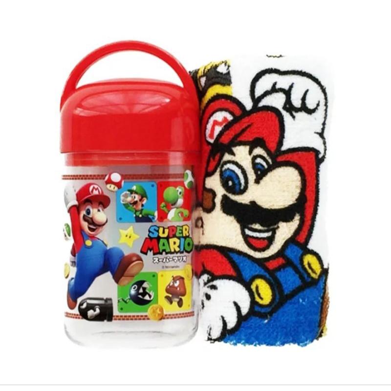 超級瑪利歐設計的毛巾和毛巾架盒。 它很衛生,您可以將其放在濕毛巾盒中隨身攜帶。 外盒尺寸:約58 x 44 x 125mm 毛巾尺寸:約32 x 28cm 毛巾: 棉100%