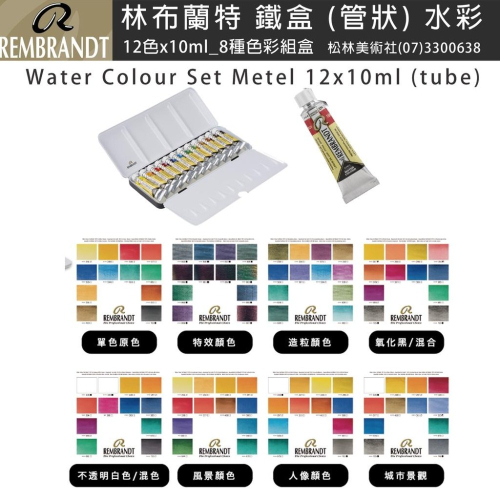 松林 林布蘭特水彩顏料(管狀)鐵盒盒裝 8種不同顏色組盒 rembrandt water color set metal