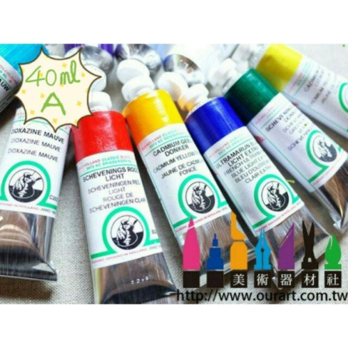 Old Holland Classic oil colors 老荷蘭古典級油畫顏料40ml 起於西元1664年,持續傳統為全世界最古老的工廠,皆以不致使顏料產生變化的石質滾輪方式製造,石質滾輪無法快速冷卻,必須以很慢的速度滾動,以避免製造中燃燒起來,以此方式製造的顏料既純且耐久不變黃,成本較高;以金屬滾輪製造的方式,冷卻快雖可以較快的速度製造更多顏料,但金屬會使濃縮色粉發生氧化,使顏料變的更偏向咖啡色系,尤其是淺藍色系及鎘色系, 即使作畫之後,氧化情形仍會持續,此方式成本雖較低,但品質無法令人滿意,還是石質滾輪方式較受喜愛。只有以風車及石質滾輪生產的極純冷壓亞麻仁油才被使用在老荷蘭的油畫顏料中,老荷蘭古典級油畫顏料中皆不含填裝物,如白堊 金貝 硫酸鹽鋁水化合物,粉或蠟等. 其優點有 : 1.較不透明 , 較佳覆蓋力  2. 顏料的延展性 3.極出色的明暗度。老荷蘭油畫顏料外包裝標籤都是以手工繪製的,即使在陽光直接照射下,亦保持永不退色,因為顏料由純色粉及油調成非常粘稠,所以無法用機器裝填充管,老荷蘭油畫顏料的裝管工作都是逐管以手工完成,所以較其他廠牌略貴些。 全部顏料 ( 色粉 )100%耐光 , PIG=pigment(s)色粉 , LAKE=透明色  , EXTRA=傳統耐光色粉製成。     老荷蘭 一般 製作方式 石質滾輪 (慢工-成本高 /純度高,耐久不變黃) 金屬滾輪(快速-成本低 /製作時色粉氧化顏料會偏咖啡,易氧化) 優點 不透明有覆蓋性/延展性好/明暗度佳/包裝全純手工。 你好,【美術社直營】歡迎您的光臨!實體店家30餘年,經銷各種美術美工材料, 歡迎洽詢,團訂可議 {貼心提醒} 由於是實體店家,確保商品有現貨,下標前請先留言或來電確認是否有庫存 Old Holland 老荷蘭古典級油畫顏料40ml A級 B級 C級 D級 E級 F級