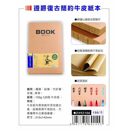 品牌: 遵爵(POTENTATE) 🔶 特性: 1️⃣ 簡約封面可自行設計,創造個人風格 2️⃣ 線膠裝訂,長期翻閱,頁面不易散落 3️⃣ 紙質耐擦不易起毛 🔶 適用:鋼筆、鉛筆、代針筆、炭筆.....等等 🔶 材質:100g 牛皮紙 🔶 張數:120張 🔶 尺寸:210 x 142 mm 【美術社直營】 歡迎您的光臨!實體店家30餘年,經銷各種美術美工材料, 歡迎洽詢,團訂可議 {貼心提醒} 1.由於是實體店家,確保商品有現貨,下標前請先留言或來電確認是否有庫存 2.有時顯示上線狀態.聊聊未回.不是故意不回應唷 .因為工作時間都會在線上 但可能會因其他工作耽擱 聊聊都會依序回覆您的.請買家不要擔心唷..... 3.客服服務時間:週一至週五 10:00-18:00 週六及週日休息 如有任何問題歡迎隨時留言詢問 如遇休假日未能及時回覆. 上班時間一定會處裡的 請買家放心喔.....
