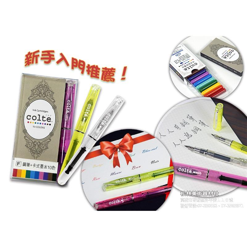未再進松林_colte 英文書法鋼筆 特惠贈 卡式墨水10 色 筆桿: 粉紅/黃/透明 三色可選 單支賣場