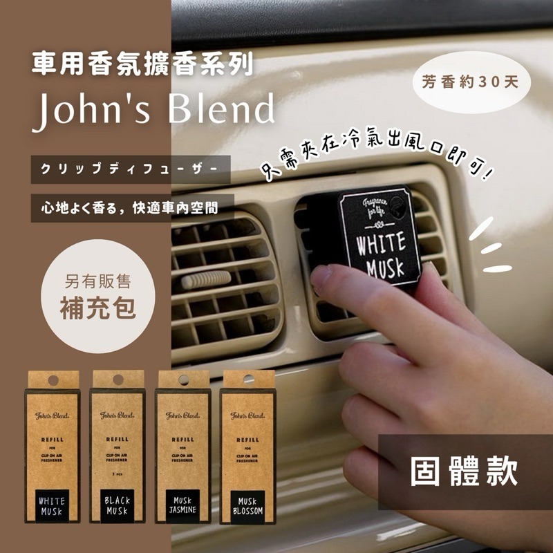 日本 John's Blend 出風口芳香劑 車用香氛夾 白麝香 小蒼蘭 車用香氛