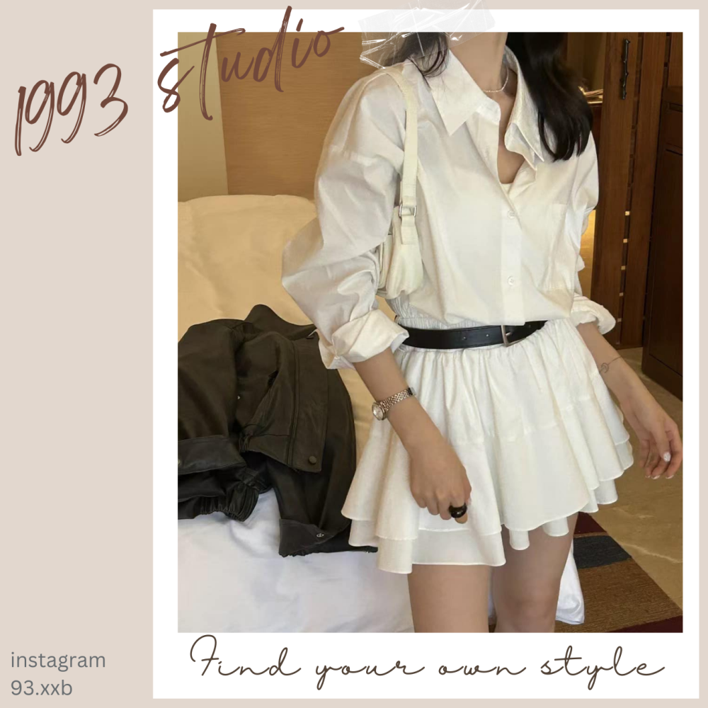 韓系設計感收腰珍珠白洋裝(附皮帶)#B20138