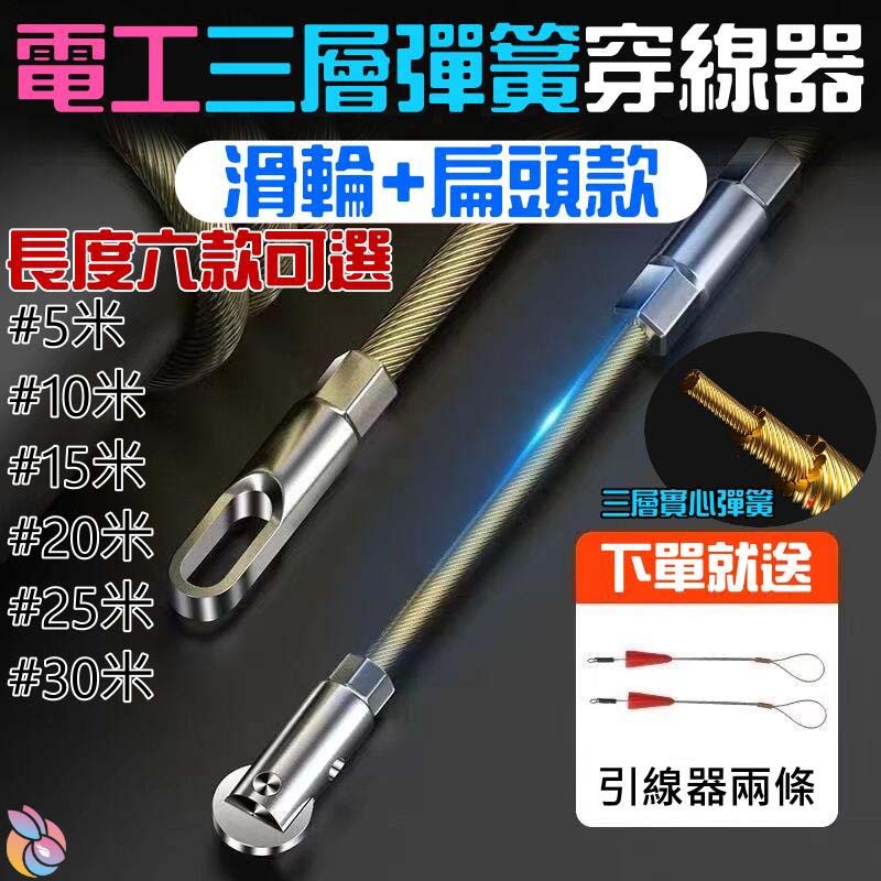 產品名稱:電工三層彈簧穿線器 滑輪+扁頭款