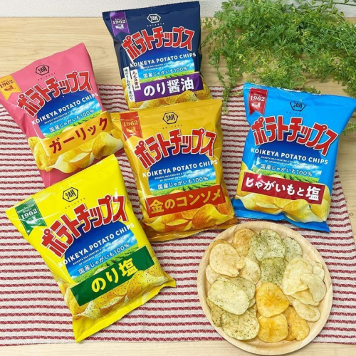 【無國界零食屋】日本 湖池屋 KOIKEYA 洋芋片 薯片 鹽味 大蒜 清湯 經典洋芋片 海苔鹽 清湯味 海苔醬油味