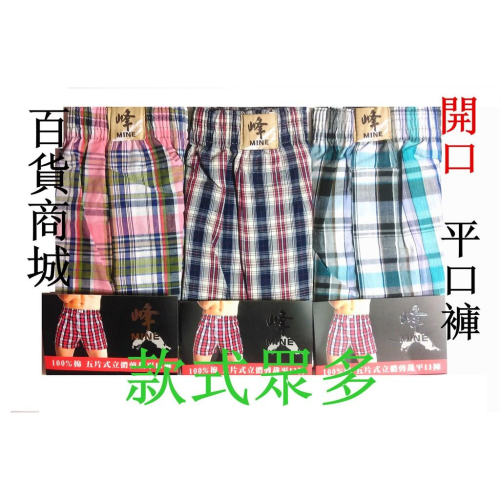 【百貨商城】五片式立體剪裁 開口 開檔 平口褲 內褲 四角褲 格紋 花色多 峰