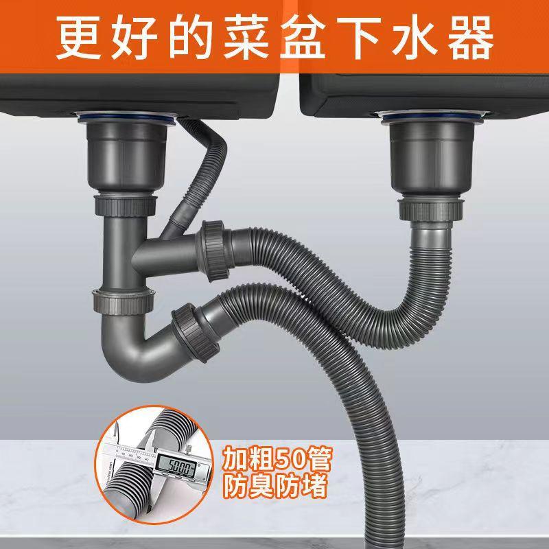 極光商城-廚房水槽下水器套裝洗菜盆防臭下水管單槽雙槽加厚排水管加粗50管
