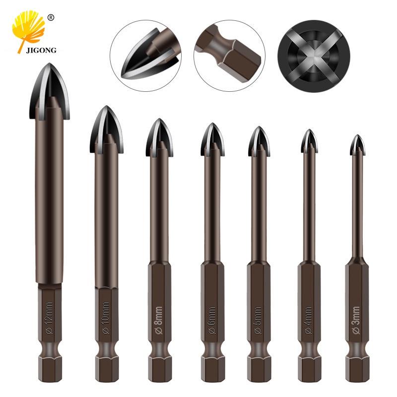 極光商城-六角十字瓷磚鑽頭玻璃陶瓷混凝土水泥牆開孔器合金三角鑽頭