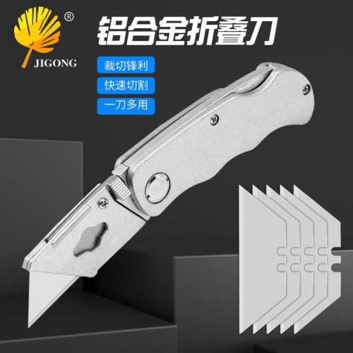 極光商城-帶防割保護蓋合金鋼折疊美工刀鋁合金刀身硬度高背部掛扣設計