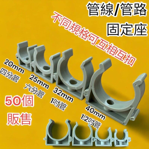 產品特性 材質:採PPR(卡其色)射出成型彈性大、耐衝擊。 用法:先用螺絲固定管線固定座,再將欲固定的圓管或電線向下壓即可緊緊扣住。