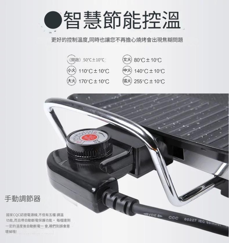 - **高效能**:僅適用於1500W以內的電烤盤,確保安全使用。