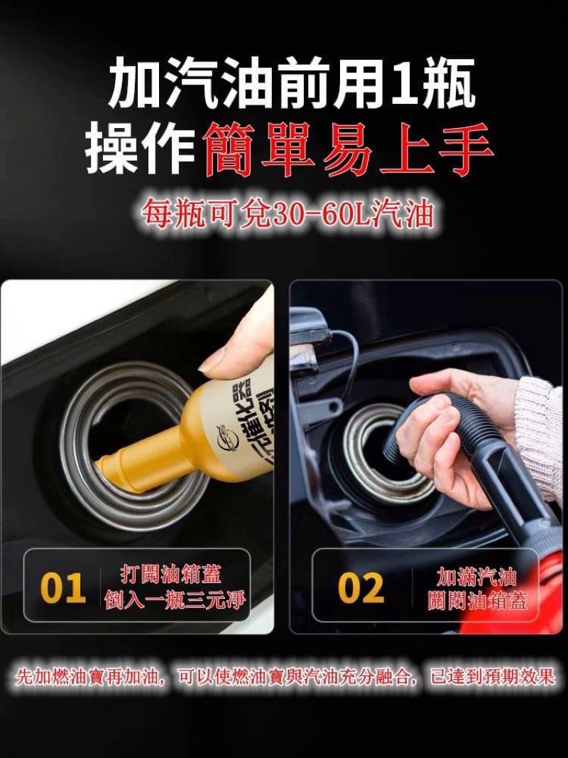 此外,使用起來也非常方便,只需要將一罐添加到40-60L的汽油中,每5000公里添加一罐即可。適用於各種車型,但一次限量40罐,立刻行動吧,讓您的愛車煥然一新,燃油更加經濟,行車更加安全,讓您享受更高品質的駕馭體驗!