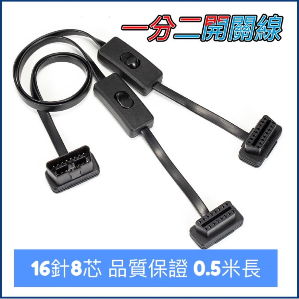 台灣出貨 OBD2 一分二開關延長線 一分二扁線 扁線 帶開關轉接線 一分二開關線 延長線 汽車 開關線 延長線
