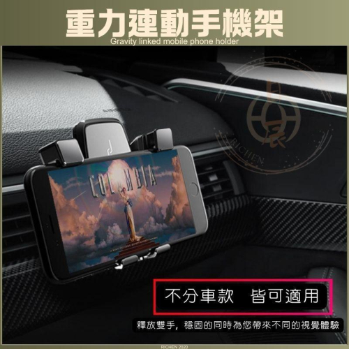 本賣場商品皆有現貨,台灣店家現貨供應、台灣寄出、免漫長等待,售後有保障! 下單24H出貨(例假日除外急需可聊聊問當天有無出貨再下單) 商品名稱: 重力連動手機架 適用車型: 不分車款 顏色:星耀黑 安裝方式: 直接夾在您想要放置手機架的出風口位置即可 商品特性: 不分車款,夾式底座無需煩惱手機架黏不緊導致掉落,角度可依個人喜好調整, 安裝簡易/牢固不搖。 注意事項: 1. 延長支架需加購 2. 手機含保護殼若超過厚度1.3cm,寬度8.5cm無法使用