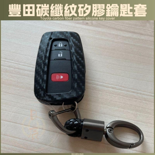 TOYOTA 豐田 COROLLA CROSS 卡夢紋矽膠鑰匙保護套 鑰匙圈 鑰匙皮套 ALTIS RAV4 CAMRY