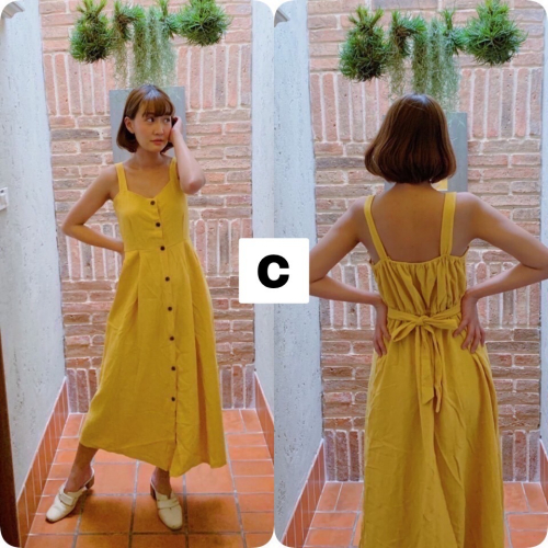泰國 超美細肩洋裝 超美排釦素色洋裝