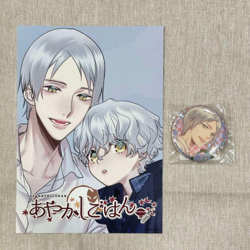 [全新] あやかしごはん 吟 DMM抽賞 D賞徽章x1、吟&綴 10周年 特典故事卡(背面有故事)x1 (不拆售)