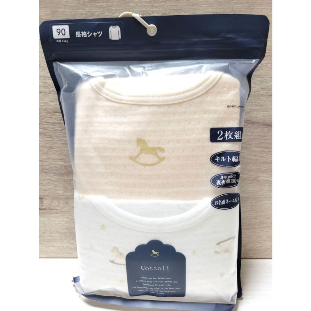 【現貨90cm🚩日本空運】日本Cottoli 長袖上衣 鋪棉 小木馬 秋冬 圓領 保暖 打底內搭