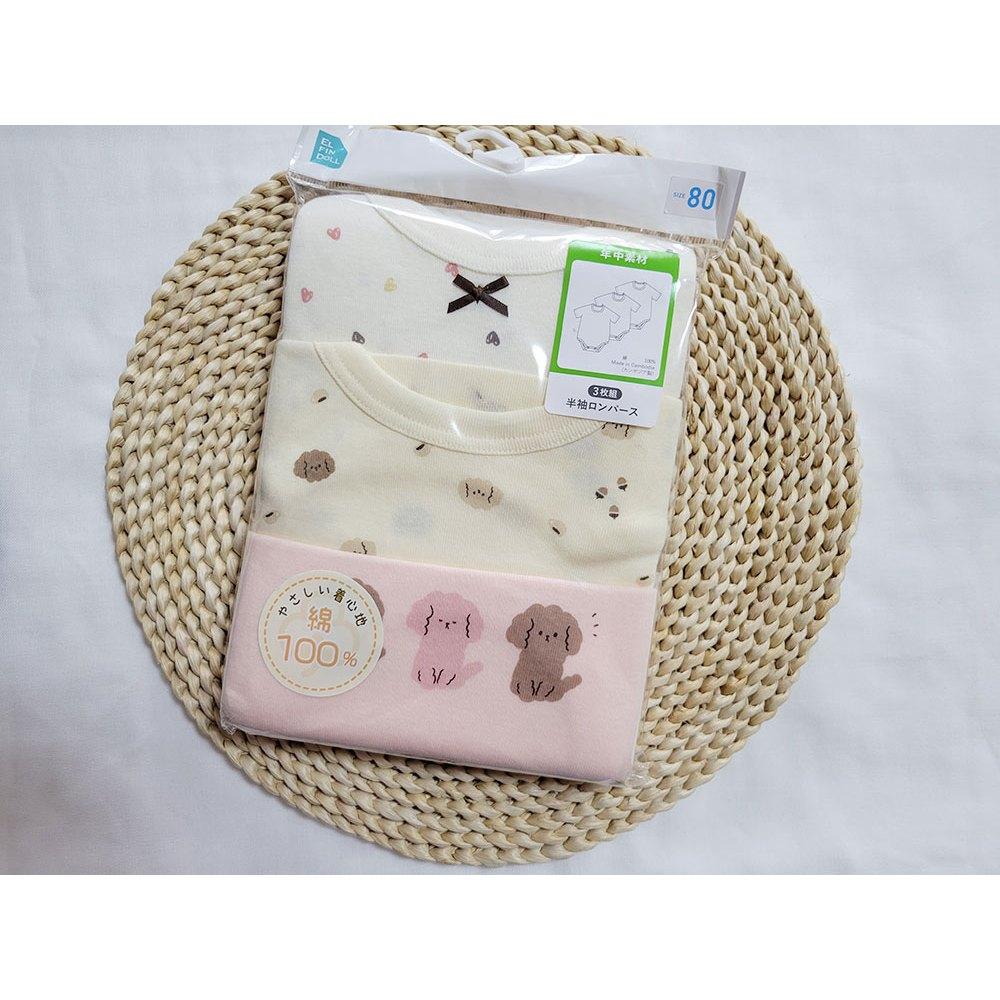 【🍭70cm | 80cm | 90cm】新生兒短袖包屁衣 3件組 100%純棉 日本西松屋 愛心 小狗 粉色 親膚