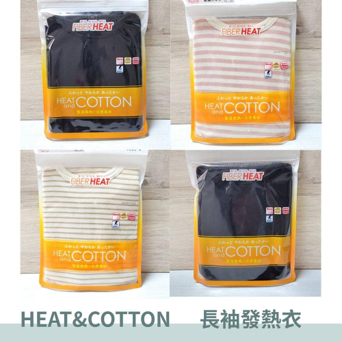 【80cm | 90cm🍭日本空運】日本品牌 發熱長袖上衣 HEAT&COTTON 純棉100% 條紋 吸濕保暖 防靜電