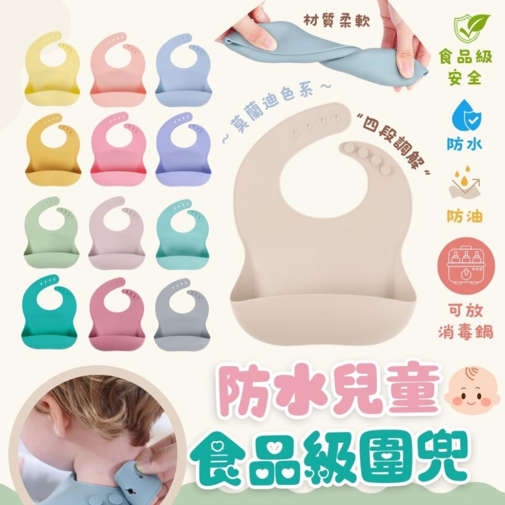 【外出必備🍭】防水兒童食品級圍兜 四段調整 莫蘭迪色 防水防油 可放消毒鍋 蝦皮開立發票
