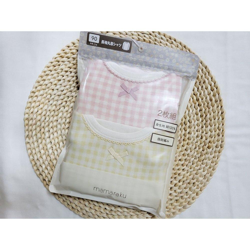 【秋季新品🍭90公分】日本進口 mamaraku 長袖上衣2件組 格紋款 粉色 檸檬黃 蝴蝶結 圓領日本童裝 薄款長袖