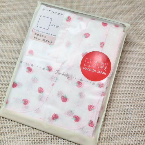 【純棉日本製🔴】紗布巾6入組-23x23公分 口水巾🍭草莓 純棉 方巾 萬用巾 新生兒適用親膚
