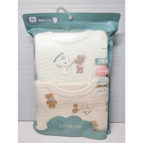 【現貨80cm 🚩日本童裝空運】futafuta 長袖包屁衣 白色雪人 小熊 2件組