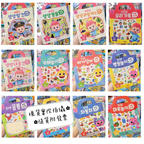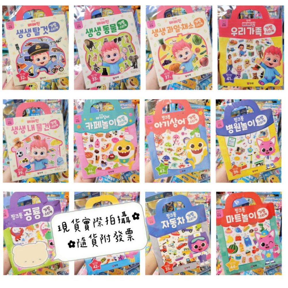 【現貨不用等】韓國 鯊魚寶寶 貝貝彬 碰碰狐 Pinkfong 重複厚貼 手提貼紙書