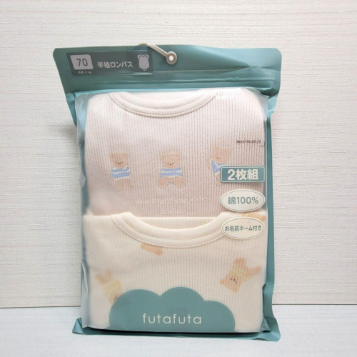 【70cm🍭】日本 futafuta 短袖包屁衣 兩件組 熊熊 新生兒 日本童裝 純棉