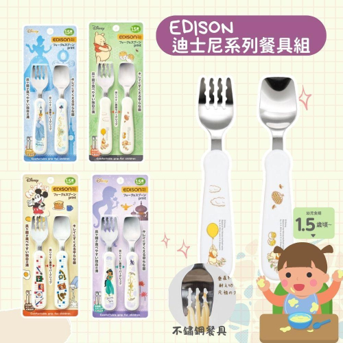 【現貨】 日本Edison 迪士尼 學習餐具 湯匙 叉子 學習餐具組 1.5歲以上 不鏽鋼餐具 韓國製